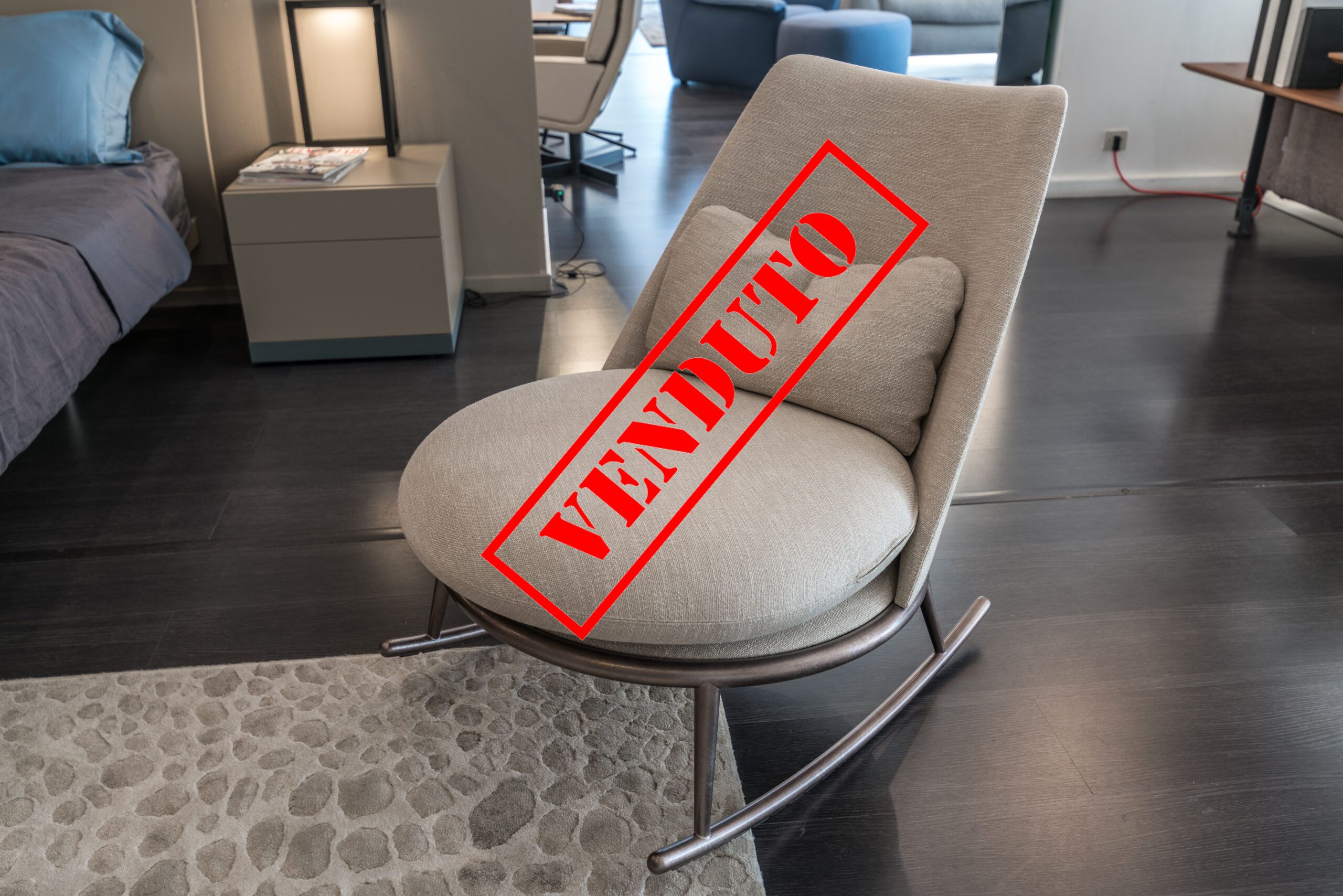 POLTRONA A DONDOLO AURORA FOGLIA ARGENTO BRONZATO/LINONE NATURALE